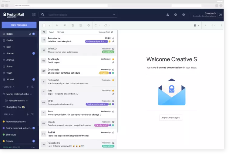 Anyone familiar with webmail services will feel instantly at home with ProtonMail. The new 2.0 interface looks good, and works smoothly.