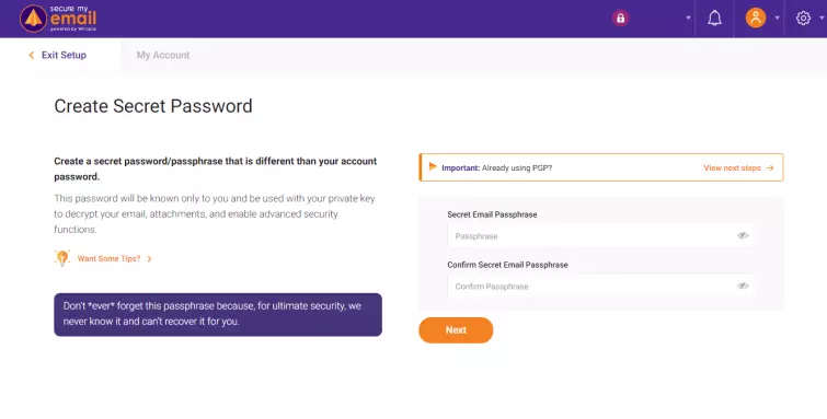 As you'd expect from a service that prides itself on its security measures, SecureMyEmail lets you set your very own secure passphrase. The service itself won't store this phrase, however, so it's recommended that you make it something memorable – or that you write it down.