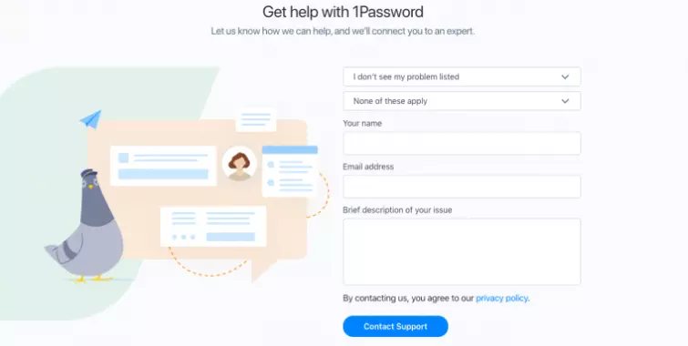 The 1Password pricing page proudly boasts “Friendly 24/7 email support” as one of the features available for users, but this seems a big of an exaggeration, in our experience, as we received a response approximately nine hours after submitting a contact form. Sure, you can submit a support ticket at any time day or night, but don’t expect to receive true 24/7 support around the clock.