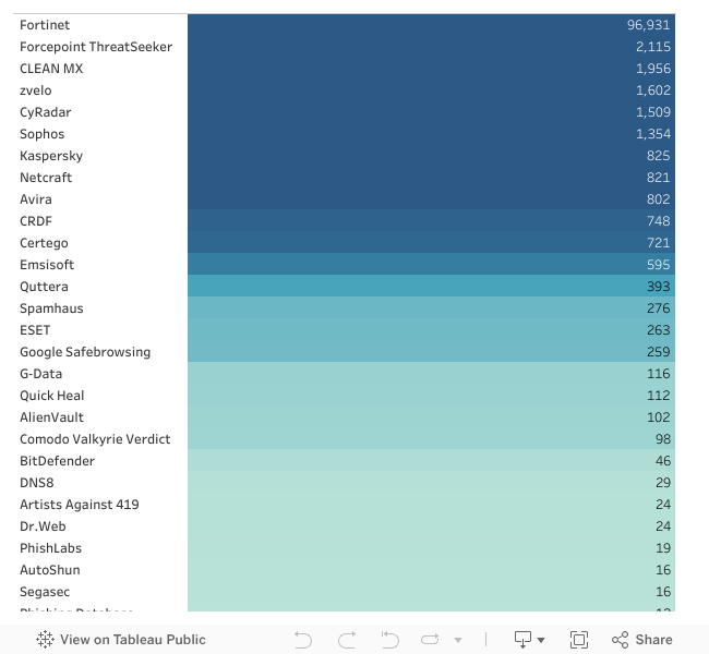It is worth noting that security vendors often have different results. A URL might be labeled benign by Sophos but labeled malicious by Fortinet. Due to the nature of the research, we decided to set the threshold as low as possible, meaning that if any vendor returned a "malicious” label, the domain was regarded as malicious for the purposes of the study.