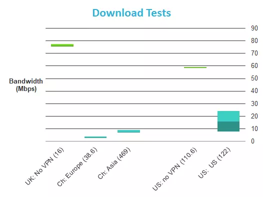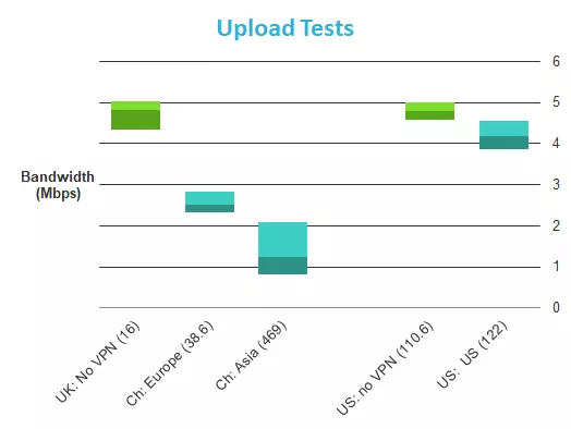 Speed tests were performed on a 50Mbps/3Mbps UK broadband connection using TestMy.net.