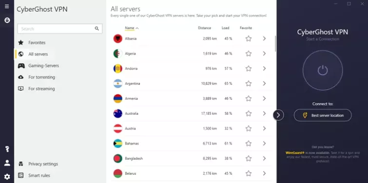 As mentioned earlier, CyberGhost now includes WireGuard connections. This is a modern VPN protocol that is designed to provide super-fast speeds. So, if you need that extra bit of speed for torrenting or streaming, it is definitely worth giving it a go.