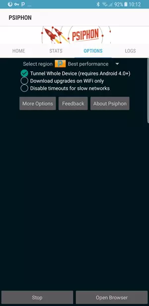 It is also possible to download the basic Psiphon Android VPN app (with added ads) or the Psiphon Pro app from the Google Play Store. This option is not available in all countries, however.