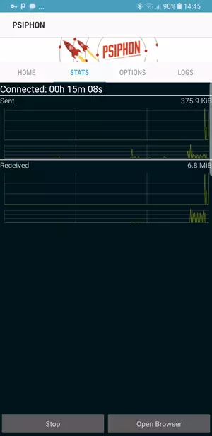 You can check out your bandwidth usage in the Stats section. This can be particularly useful in countries where mobile internet data is expensive.
