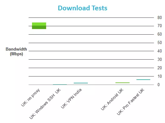 All tests were performed on my Virgin Media UK fiber connection. When connecting via VPN it not possible to select sever location – Psiphon selected India for me.