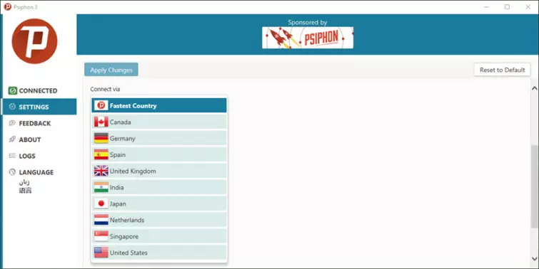 Don’t expect blazing fast speeds when using Psiphon. In the default Windows SSH mode, download speeds averaged just 133 kbps. Speeds were a little more useable in VPN mode, even though the VPN server was located very far from me.