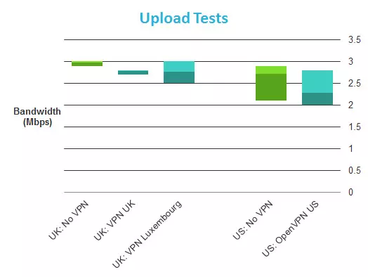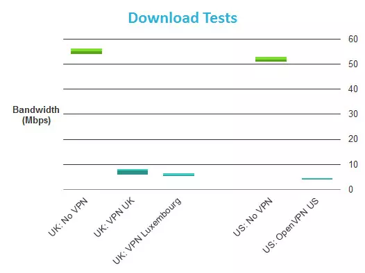 The graphs show the highest, lowest and average speeds for each server and location. See our full speed test explanation for more detail.