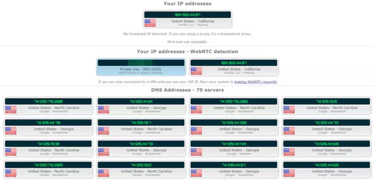 Note that WebRTC did detect my internal network address (which also shows that the router uses a NAT gateway, hence the [RFC1918] Private Address). This cannot be used to identify me, though, so does not constitute an IP leak.