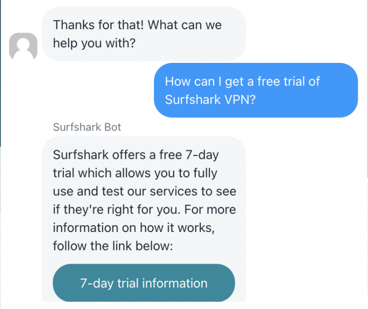 Surfshark is the best free trial VPN. You can use it for 7-days, but it requires a credit card upfront. However, it's super fast and secure, making it excellent for all data-intensive activities. Surfshark Demo Surfshark burst onto the VPN scene and has since become regarded as one of the most versatile and reliable services on the market. The VPN is a fantastic all-rounder, particularly good at unblocking streaming services, and offers all interested users a 7-day free trial! You'll need an Android, iOS, or Mac device to download the Surfshark free trial, which is available on the Google Play and Apple App stores – but that doesn't mean that users with different operating systems will miss out! Once you've downloaded and activated your trial subscription, you'll be able to use it on any device, at any time, for 7 days. I particularly like that Surfshark notifies you near the end of your trial period so you don't get blindsided by a fee. Plus, if you do miss the reminder and end up paying for a full subscription by mistake, you'll still be able to take advantage of Surfshark's 30-day money-back guarantee to claim your money back. Whilst finding and downloading Surfshark's free trial can be a little tricky, it's well worth it! Very few VPN free trials give you unfettered access to the service's premium features, after all, but Surfshark does. You'll also be able to hop across Surfshark's huge network of servers and browse a whopping 25 different Netflix libraries! So, if you're serious about your streaming and want to get the most out of your Netflix subscription, Surfshark's free trial is a fantastic option. Surfshark doesn't play around when it comes to privacy, either. The VPN makes good use of AES 256-bit encryption and a number of battle-tested protocols – including WireGuard, which is a secure, but fast protocol, and the super secure OpenVPN. Plus, you can check out Surfshark's obfuscation (stealth) feature, called Camouflage mode, to hide your VPN usage entirely. Camouflage disguises your VPN traffic as regular traffic, so it's much easier to bypass any pesky VPN bans that might be enforced in your country or workplace. And, as you'd expect from such a high-profile provider, Surfshark comes with its own kill-switch that'll keep your original IP address from leaking if your VPN connection drops. Just remember to turn the kill-switch on via your settings first! Being based in the British Virgin Islands keeps Surfshark out of the reach of invasive US and UK jurisdictions, and there are no mandatory data retention laws to worry about, either. Surfshark also easily qualifies as a no-logs provider, seeing as it won't track your online whereabouts or actions, and has even invested in a third-party security audit! As I mentioned earlier, Surfshark is a great VPN pick for anyone interested in unblocking restricted content from around the globe. That might be streaming services, news outlets, blogs, social media pages, or torrenting sites – whatever you plan to check out, Surfshark has you covered with servers in 100 countries