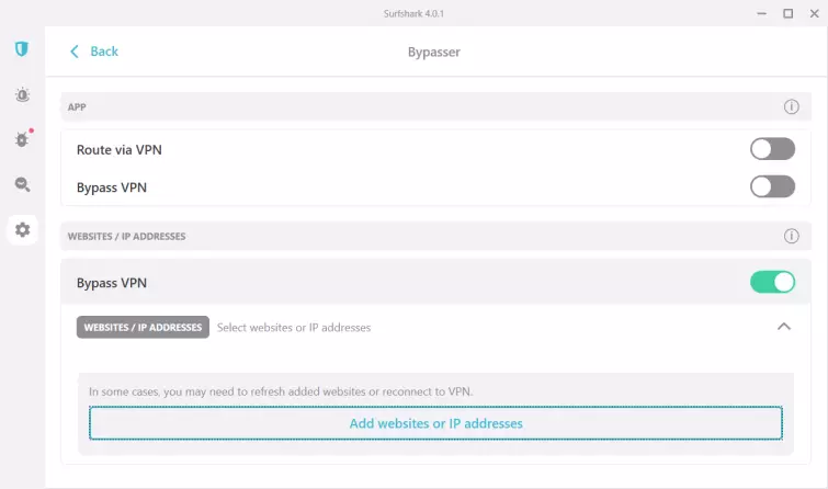 Bypasser goes beyond a simple split-tunnel interface by allowing you to not only assign which programs are routed through your VPN and which bypass it, but also which websites and IP addresses you want to bypass the VPN. This is a step above most split-tunnelling features and is incredibly handy when you're dealing with a stubborn streaming service or a particularly suspicious banking website that wants you to connect from your home network, or when logging in to your work email.
