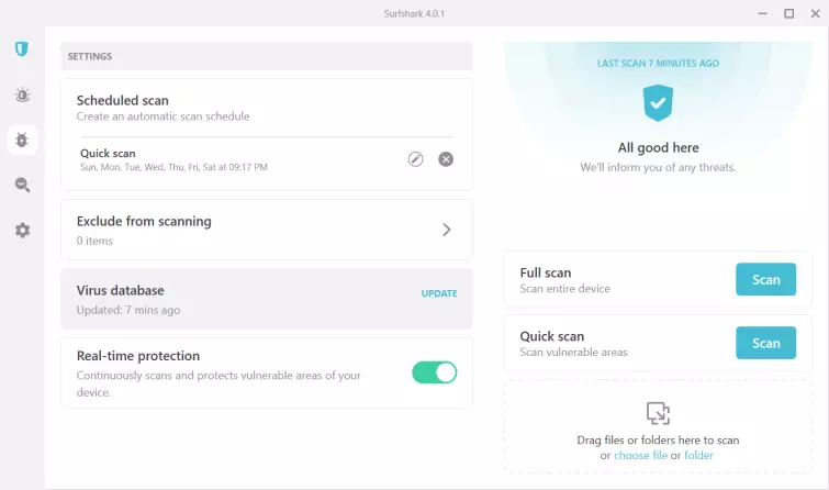 We took the Surfshark Antivirus for a spin and found that it's quick and effective, offering both targeted file scanning and full system scanning. A full review of Surfshark Antivirus is beyond the scope of this review, but it's a nice addition that comes bundled with the two-year subscription to Surfshark VPN. The interface is pleasingly simple to use and features a real-time protection option that scans incoming files to ensure your downloads aren't malware.