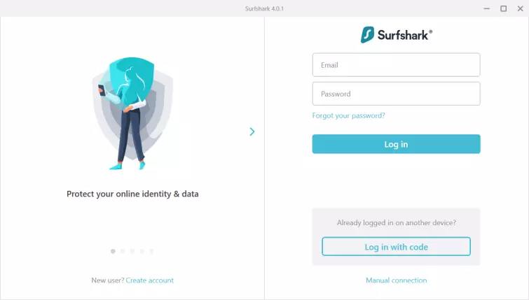 The app itself is simple to download, and once you're in you're presented with a standard login form, as well as the option to log in with a code from another device if you've already set up your Surfshark account elsewhere. As one of Surfshark's main selling points is unlimited devices under one account, we're glad to see there's an easy way to onboard new devices.