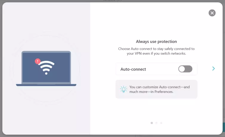 This feature, available in the Windows client, allows you to decide how the VPN app works when you connect to new Wi-Fi networks – ask, protect, or always protect.