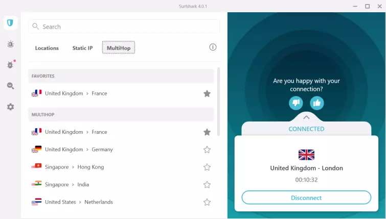 Surfshark offers several double VPN combinations, but you cannot chain any two of its servers.